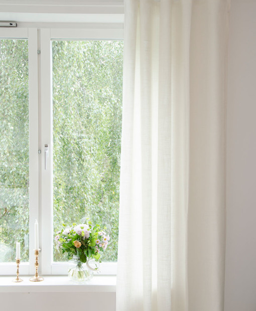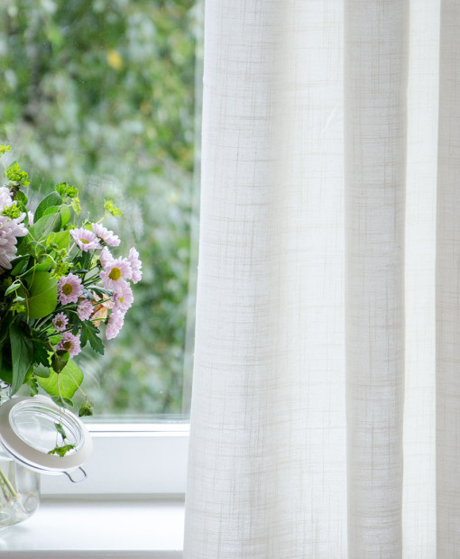 Alisa Off White linen creates a perfect look for natural and neutral decor. The material is 80% polyester and 20% linen. The shading rate is 50%. For better insulation, it is recommended to add thermal and blackout lining.