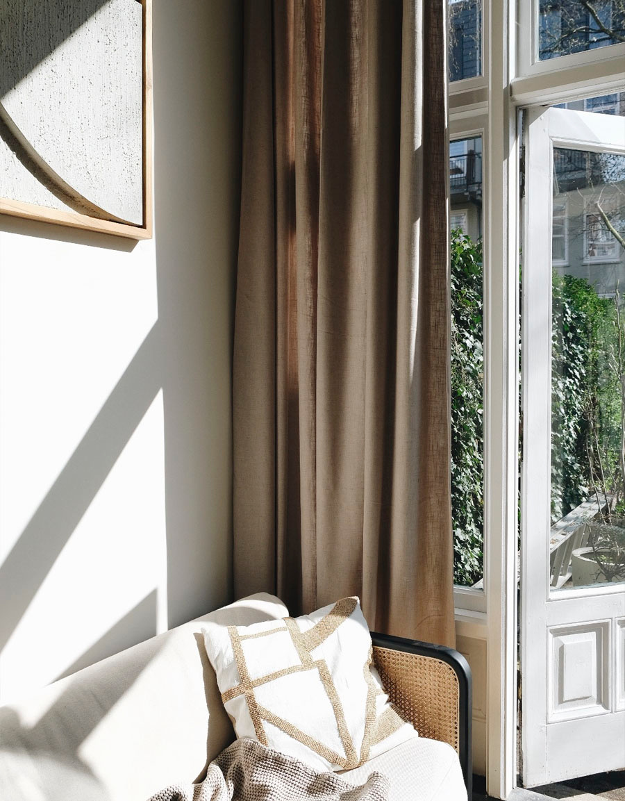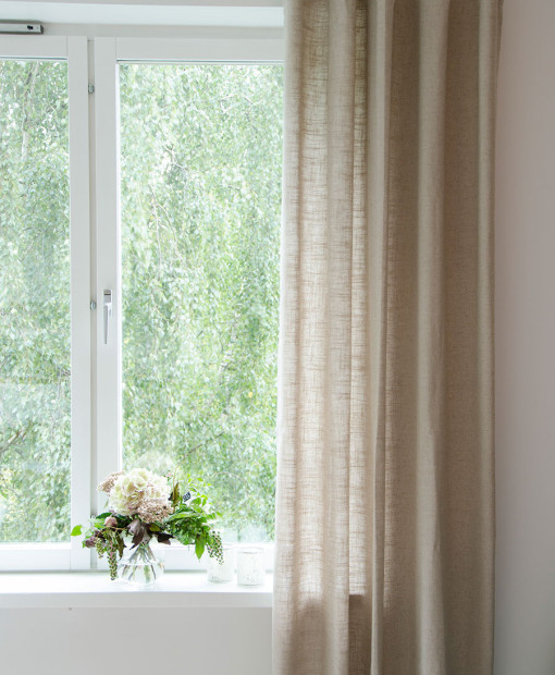 Alisa beige Linen curtain is made from 20% natural linen fiber and 80% synthetic fiber. The fabric is a high-quality fiber. It is perfect for natural home decor. Curtains bring the feeling of freshness and relaxation. Curtains are draped beautifully when it is hung. As a natural fiber, it has a fresh clean look to it and works well in both a traditional and a modern style.